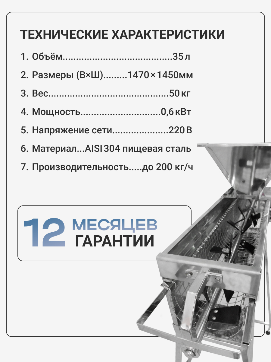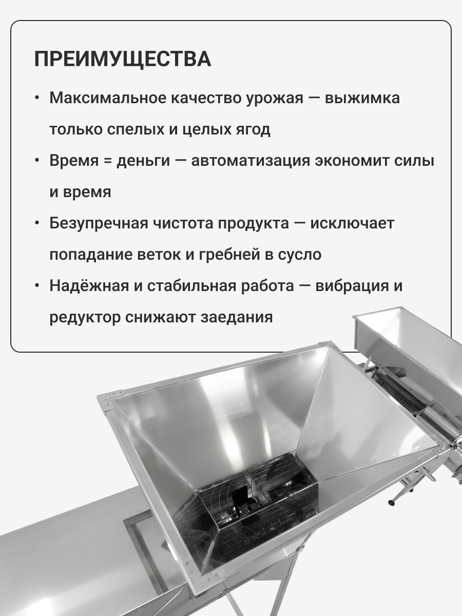 • Мотор для дополнительной очистки и проталкивания винограда;